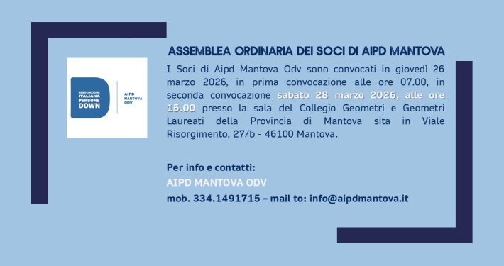 Oggi, come il primo giorno dalla nascita della nostra associazione, celebriamo tutte le famiglie di Aipd Mantova che ci permettono di continuare nel nostro cammino e di realizzare i nostri progetti.